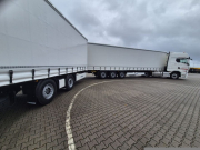 Nechybí povinná couvací kamera na vleku, jejíž obraz se bezdrátově přenáší přímo do infotainmentu tahače, ani odlehčovací zadní nápravy na návěsu i vleku. Obě přípojná vozidla jsou navíc vybavena systémem Wabco SmartBoard, který poskytuje řidiči přesné informace o tlaku a zatížení náprav. Z hlediska kapacity je souprava navržena maximálně efektivně – návěs disponuje systémem druhé podlahy, díky němuž pojme celkem 87 europalet (68 na dvoupodlažním návěsu a 19 na vleku).